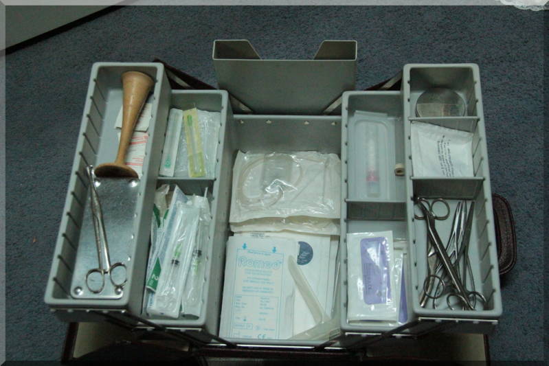 De inhoud van de koffer met o.a. een stethoscoop.