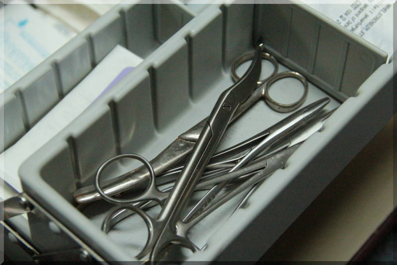 De scharen die gebruikt werden door de kraamverzorgster...