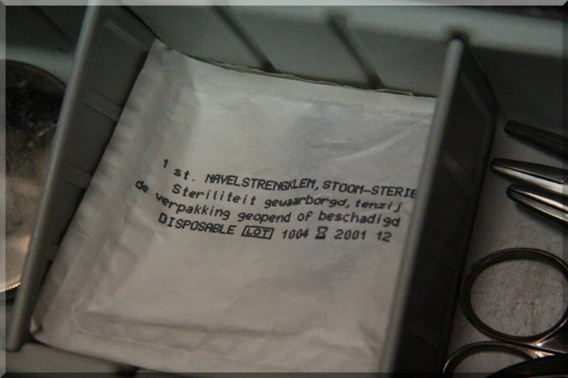 Zakje met navelstrengklem erin.
