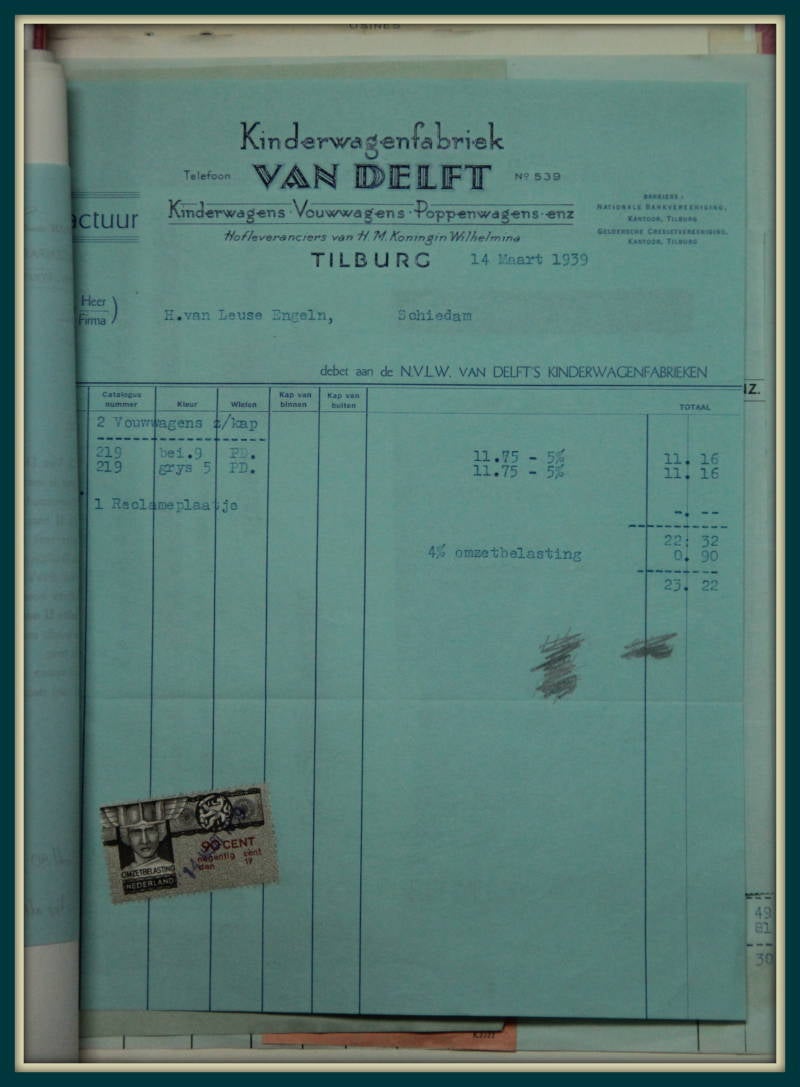 Een oude factuur van de Kinderwagenfabriek "Van Delft".