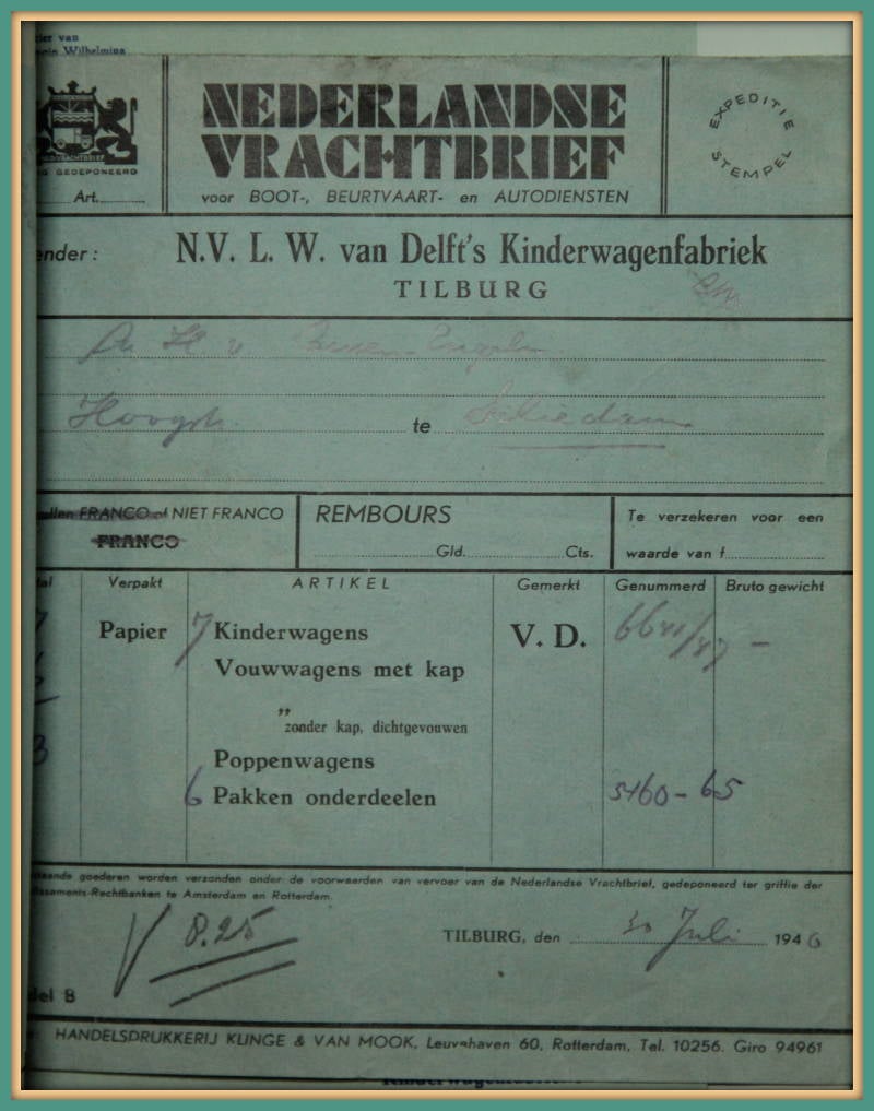 Een oude vrachtbrief, ook van de "Van Delft".