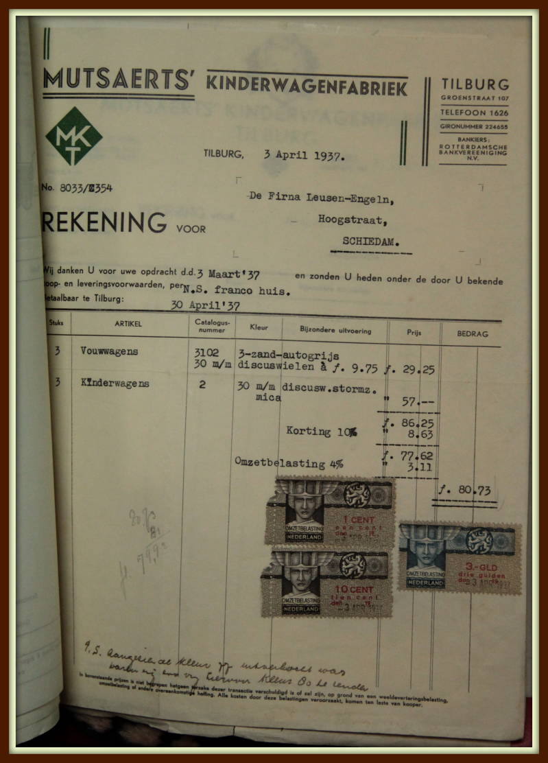 Een oude rekening van de Mutsaerts Kinderwagenfabriek.
